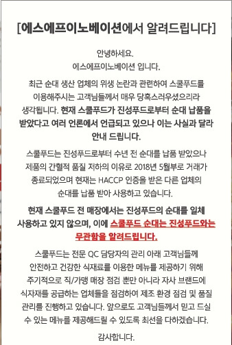 다만 스쿨푸드 같은 경우에는 진성푸드 순대 위생 논란이 붉어지면서 자사의 회사명이 언급되자, 2018년 이후 진성푸드로부터 순대를 납품받지 않았다는 발표도 있었습니다. 이처럼 현재는 관련이 없는 기업들도 피해를 볼 수 있으니, 정보를 공유할때는 주의할 필요가 있습니다.